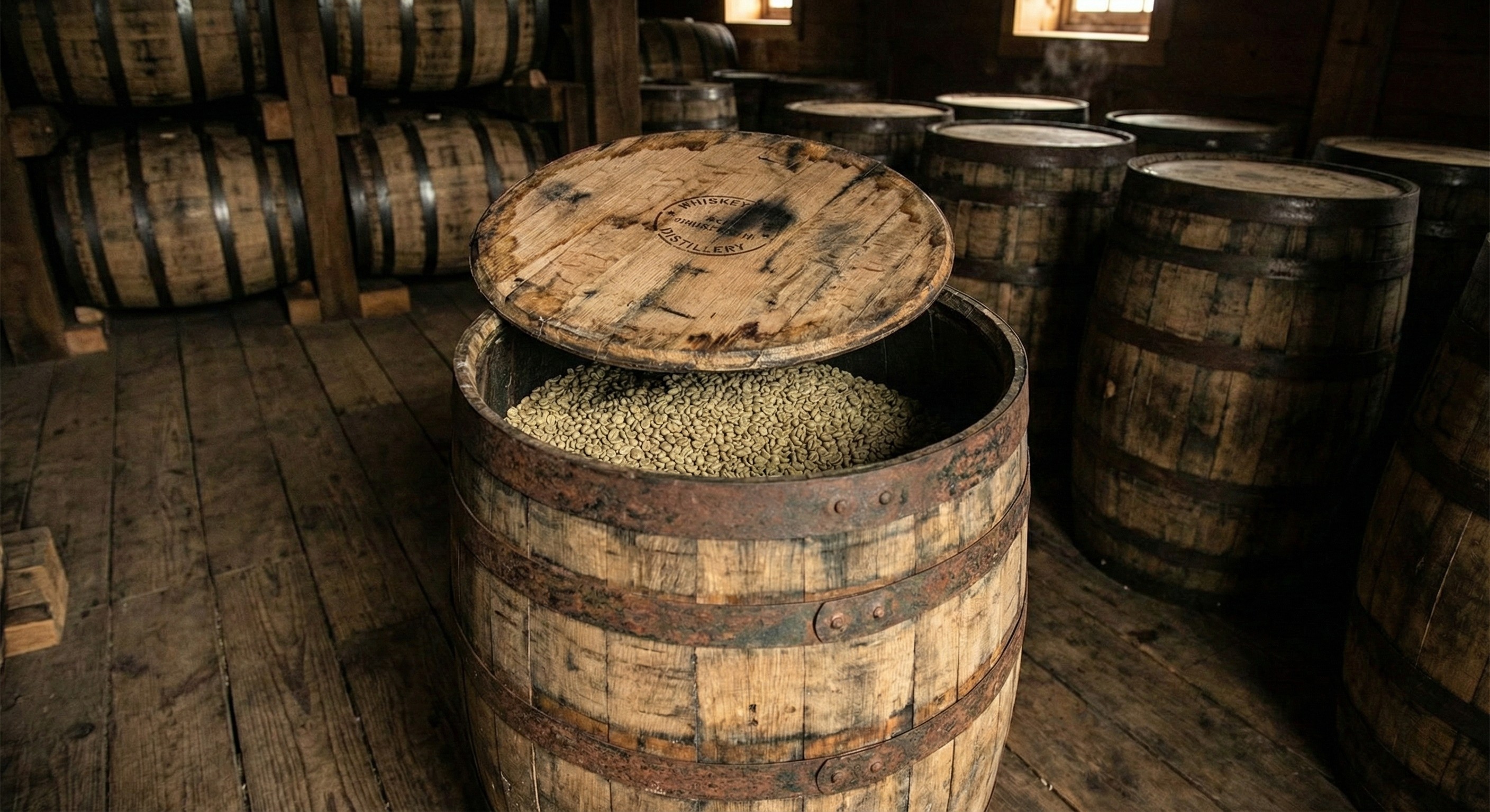 處理廠會將乾燥後的咖啡生豆,放入曾經陳釀過威士忌、白蘭地或萊姆酒的空橡木桶中,進行數週的低溫靜置熟成。