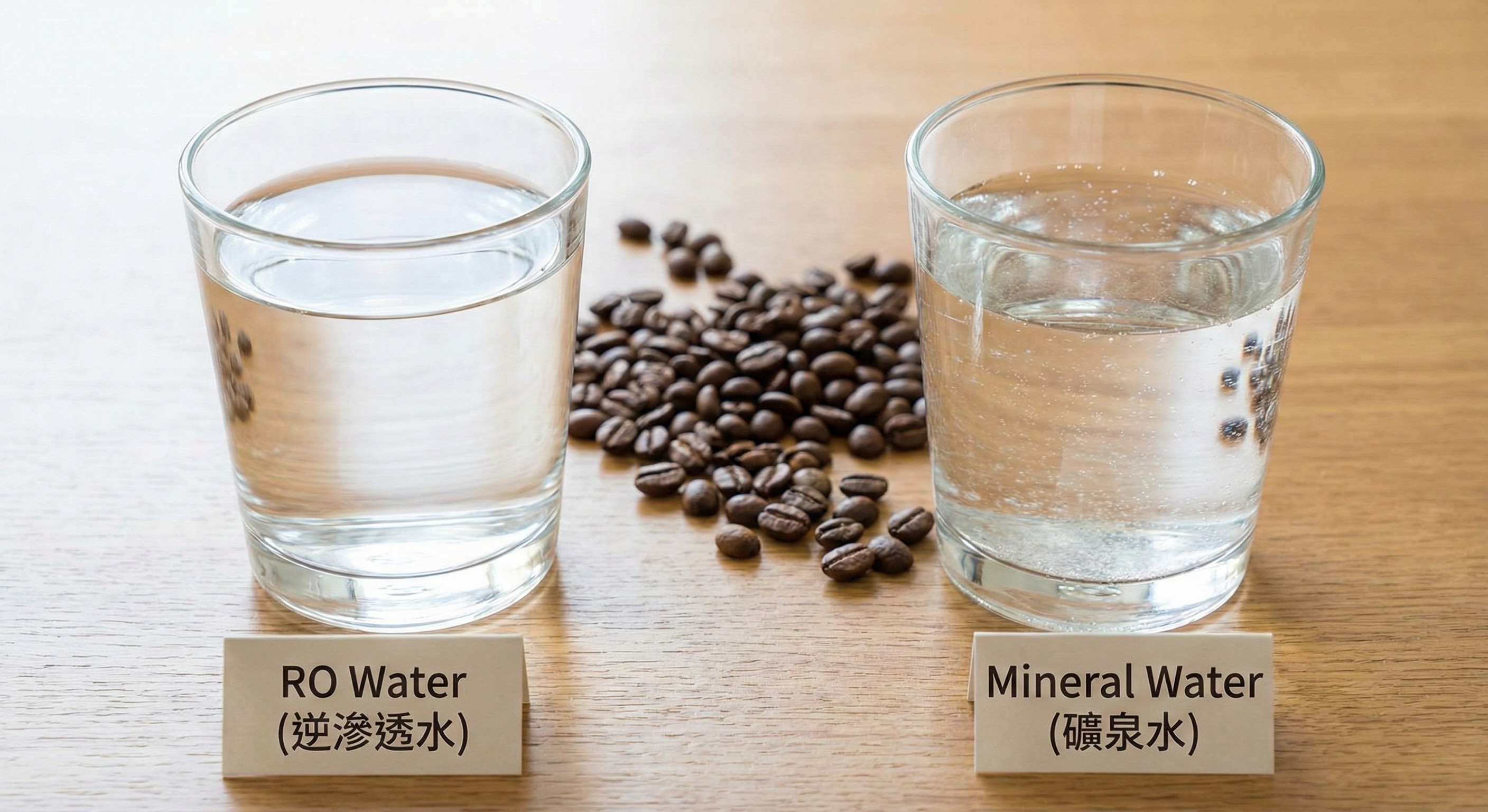 RO 逆滲透的原理,是透過極細的薄膜過濾掉水中的雜質、重金屬,但也同時把對咖啡有益的 鎂 和 鈣 通通濾掉了。